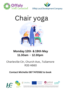 Monday 12th & 19th May, 11.30 – 12.30, Charleville Community Centre, Church Ave., Tullamore, R35 H660