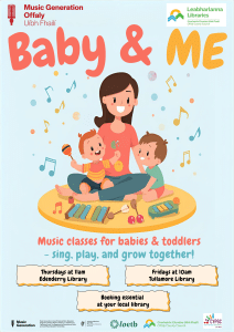 Music classes for babies and Toddlers in Edenderry library starting Thursday 8th January at 11am.