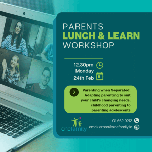 To book your place please visit the website and click on the workshop image https://onefamily.ie/parenting-workshops/
