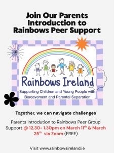 Parents Introduction to Rainbows Peer Support – Join Rainbows Ireland for a 1‑hour Zoom session for parents!