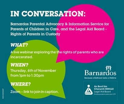 The Barnardos Parental Advocacy and Information Service is starting a second series of webinars in collaboration with the Legal Aid Board.